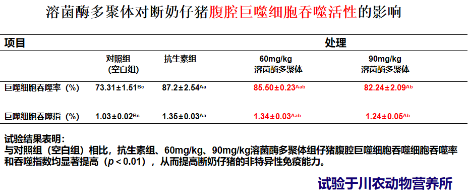 90mg/kg lysozyme group (calculated based on active ingredients) can replace antibiotics (20mg/kg antibiotics sulfate+50mg/kg kitasamycin, calculated based on active ingredients)